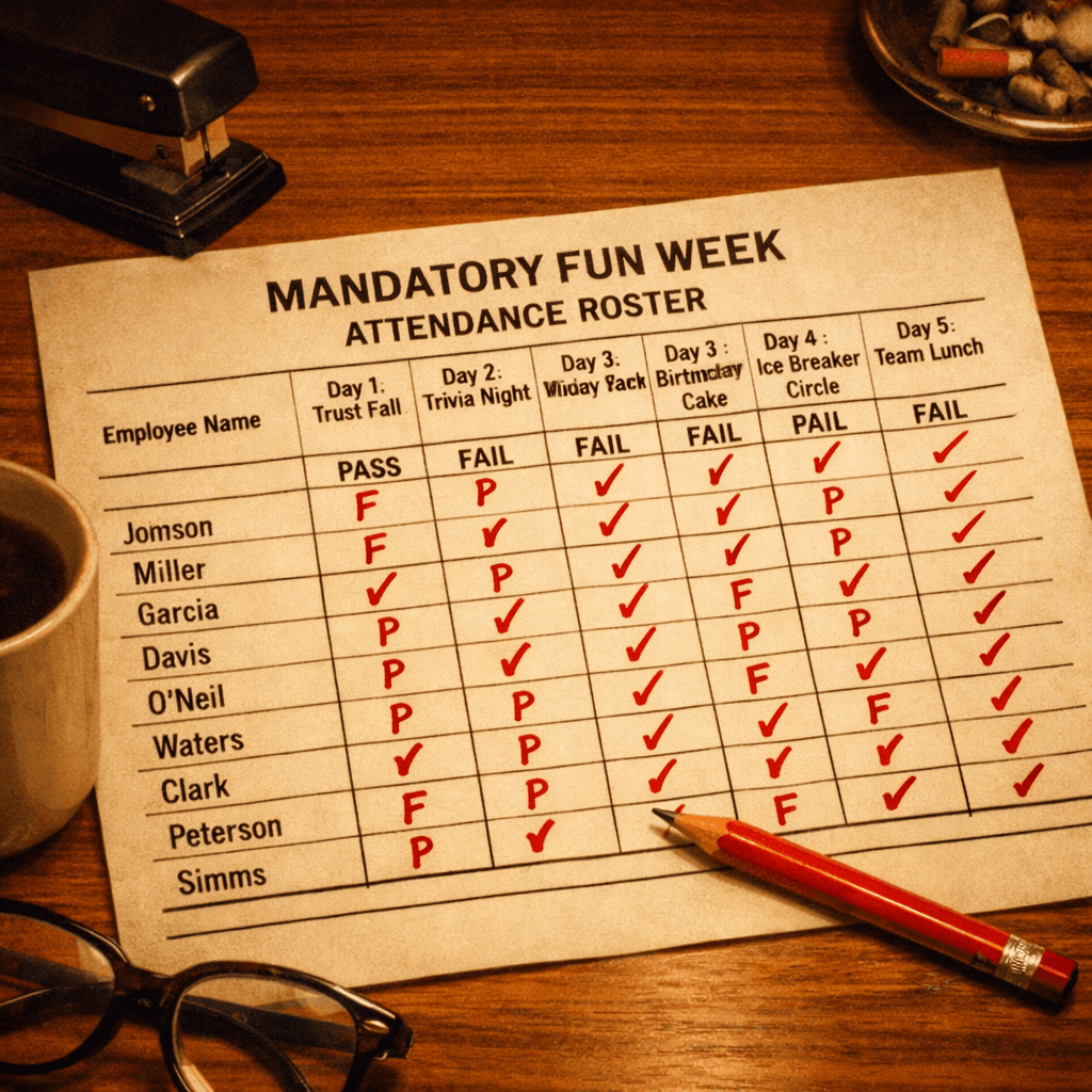 The Fun Arm — One full week. Enforced recreation. Performance reviews tracked.