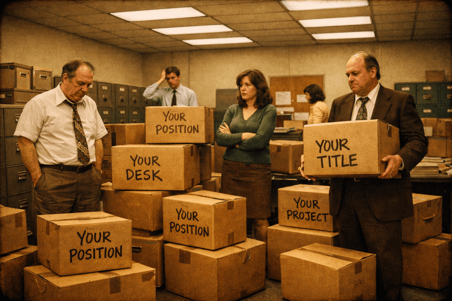 An automated system that continually promotes every employee's title without compensation or authority changes, creating an organizational structure of exclusive seniority.